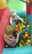 • No seu interior tem espaço pula-pula, mini escorrega e mini piscina de bolinha